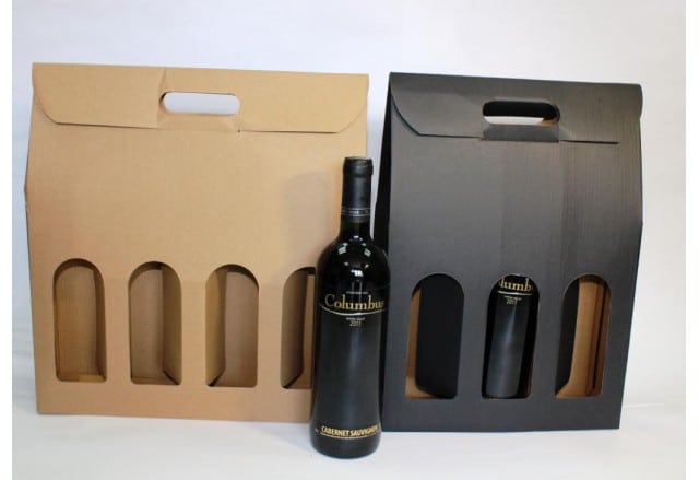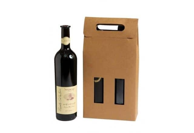 אריזת קרטון לזוג/ שלושה בקבוקי יין + חבל נשיאה.