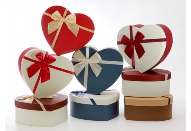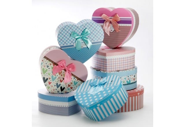 שלישית קופסאות קרטון קשיח, בצורות לב, מלבן או ריבוע.