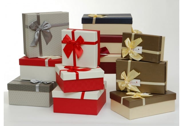 שלישית קופסאות קרטון קשיח, בצורות לב, מלבן או ריבוע.