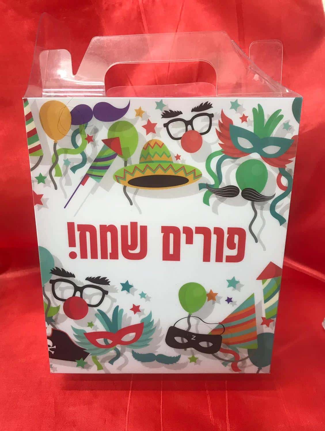 קופסת פורים שמח פי וי סי – 15X18X8 ס"מ – 12 יח
