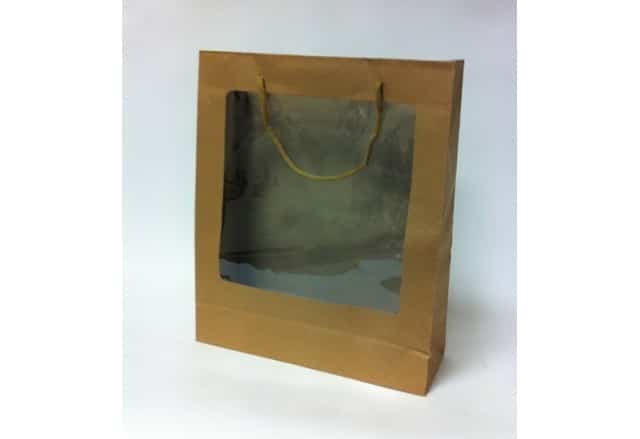שקיות קרטון עם ציפוי, ידית שרוך + חלון שקוף – 250 יח'
